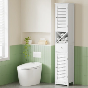 This versatile storage cabinet offers smart organisation beyond the bathroom. Its tall, slim profile fits perfectly in corners and tight spaces, while the adjustable shelves and unique X-shape shelf adapt to all your storage needs. In the bathroom, it neatly organises towels and toiletries; in the living area, it stores books and wine bottles; in the entryway, it keeps essentials tidy. The painting finish ensures durability in humid conditions, and the elegant louver doors add stylish design. This cabinet combines functionality with contemporary design for multiple living spaces.