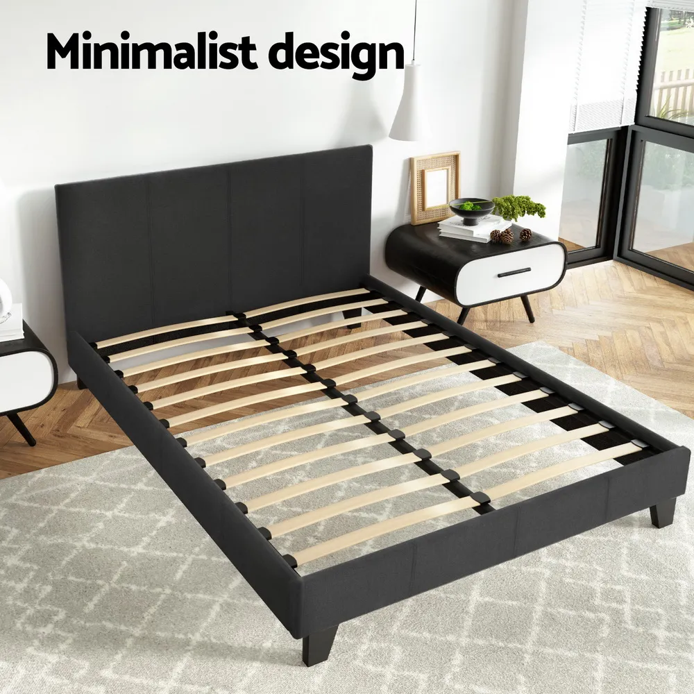 Transform your bedroom with the modern charm of the Artiss Neo Bed Frame. Upholstered with quality materials, this bed frame boasts a smooth, breathable finish that complements any space. The padded bedhead, filled with high-density foam, offers comfort for reading, streaming, or relaxing. Its wooden arched slat base is designed to flex naturally, reducing motion transfer for uninterrupted sleep. Supported by a solid wood frame and reinforced with heavy-duty metal connectors, this bed frame ensures a stable and secure foundation.