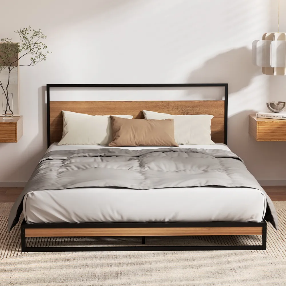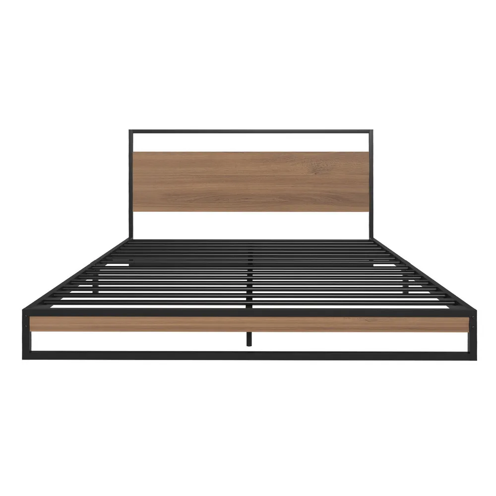 Metal and wood in perfect harmony. Our Dane Bed Frame is truly a stylish addition to any bedroom. Simple in design, the bed frame is meticulously constructed in sturdy steel and 15mm thick MDF with PVC for durability and strength. The sleek black powder-coated steel and dark wood accents lend real industrial cred to your bedroom for some standout décor. Across the frame, evenly spaced slats provide good weight distribution as well as ensuring that the mattress stays in place even with every twist and turn of your sleep. The central support beam further steadies the bed under robust use.