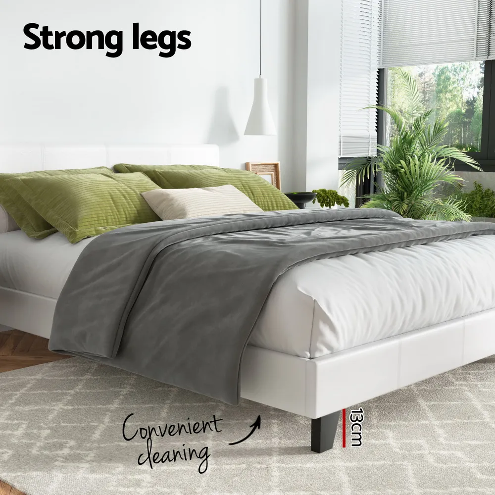 Give your bed a touch of modernistic appeal with our Artiss Neo Bed Frame. Wrapped in premium PVC leather, the bed frame is at once smooth to the touch and luxurious all round. The bedhead provides ample space for a relaxing back rest when you need to sit up on the bed to read, surf the net or catch a movie on your device. You will surely appreciate the high-density foam that fills the bedhead and every other inch of the bed frame for a well-padded look and feel. Within the frame, a highly flexible wooden arched slat base allows the bed to flex properly so that a person who lies on the bed can move around without unduly disturbing the other. Not least, the sturdy wooden frame is also held together by heavy-duty metal connectors so that you never have to worry about the stability or durability of the bed frame. If elegant sleep is what you after, look no further than the Artiss Neo Bed Frame to make your dreams come true.