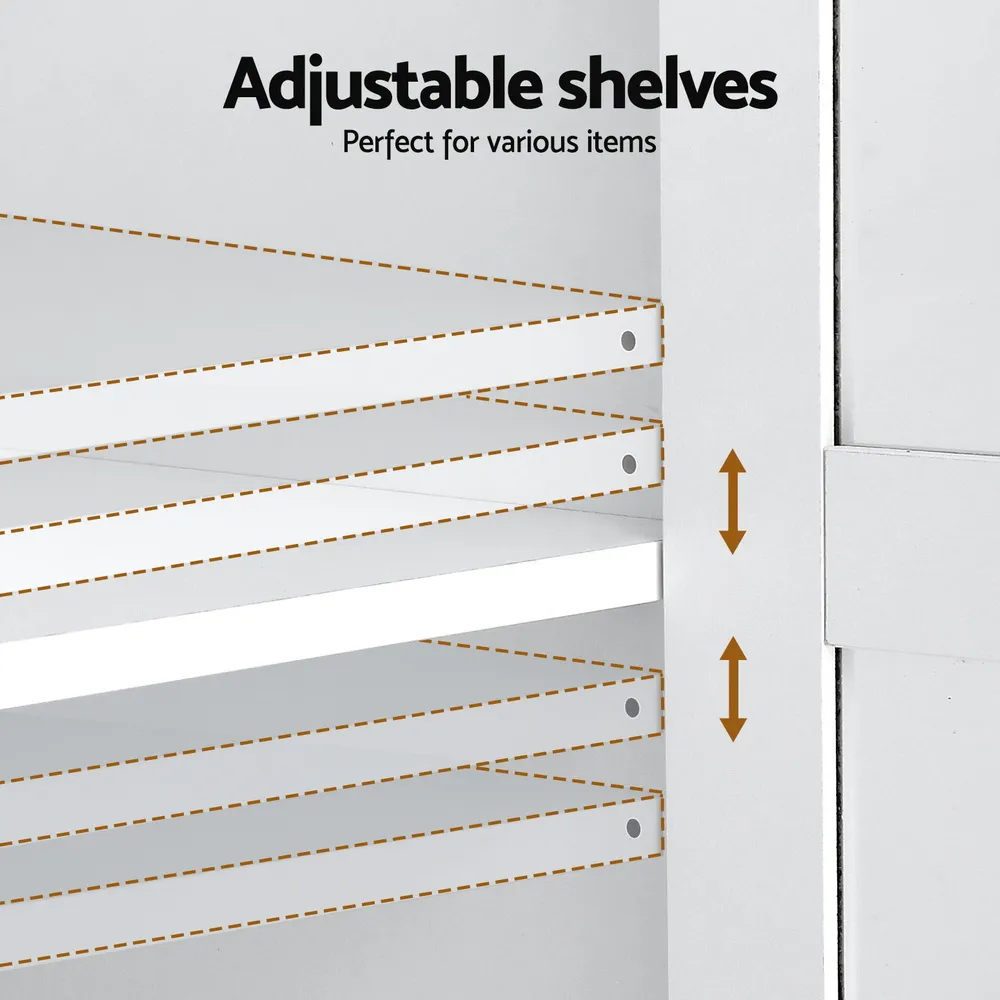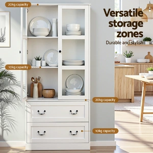 Discover elegance and functionality with our versatile buffet cabinet. With a clear door design, adjustable shelves, and silent soft-closing hinges, it ensures convenience and style for any space. Crafted with a durable particle board frame and featuring exquisite metal handles, this cabinet is built to last. An anti-tip kit is included for added safety, making it perfect for families. Easy assembly ensures you can enjoy its benefits in no time. Add a touch of sophistication to your home today!