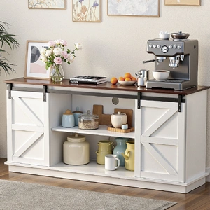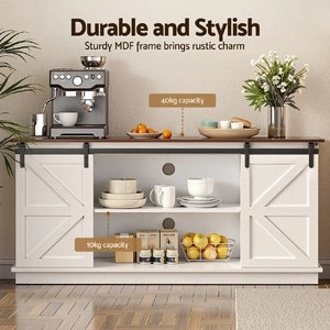 Upgrade your home storage with our 150cm rustic storage cabinet, designed with smooth sliding barn doors and a sturdy MDF frame for both style and durability. Featuring spacious 2-tier shelves, this cabinet provides ample room for storing books, d��cor, or electronics. The two cable management holes help organise your cords, while the included anti-tip kit ensures safety. Easy to maintain and clean, this cabinet is perfect for any living room, bedroom, or office. Assembly is quick and tool-friendly for your convenience. Bring rustic charm to your home with this versatile storage cabinet �C order now!