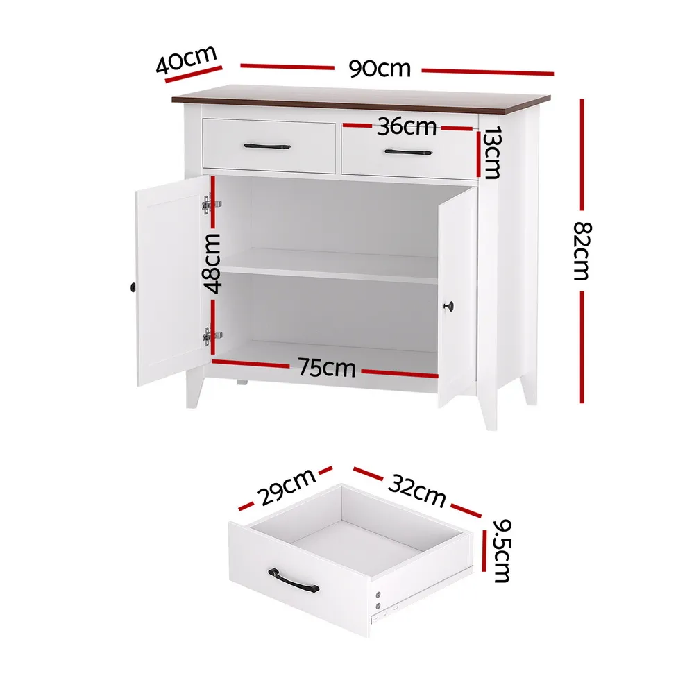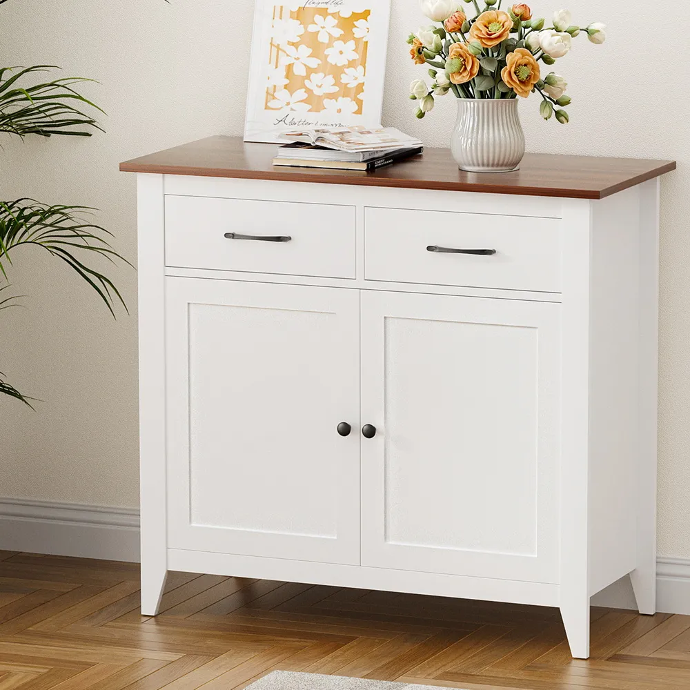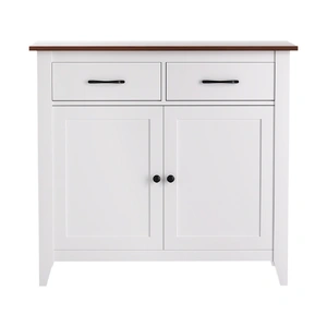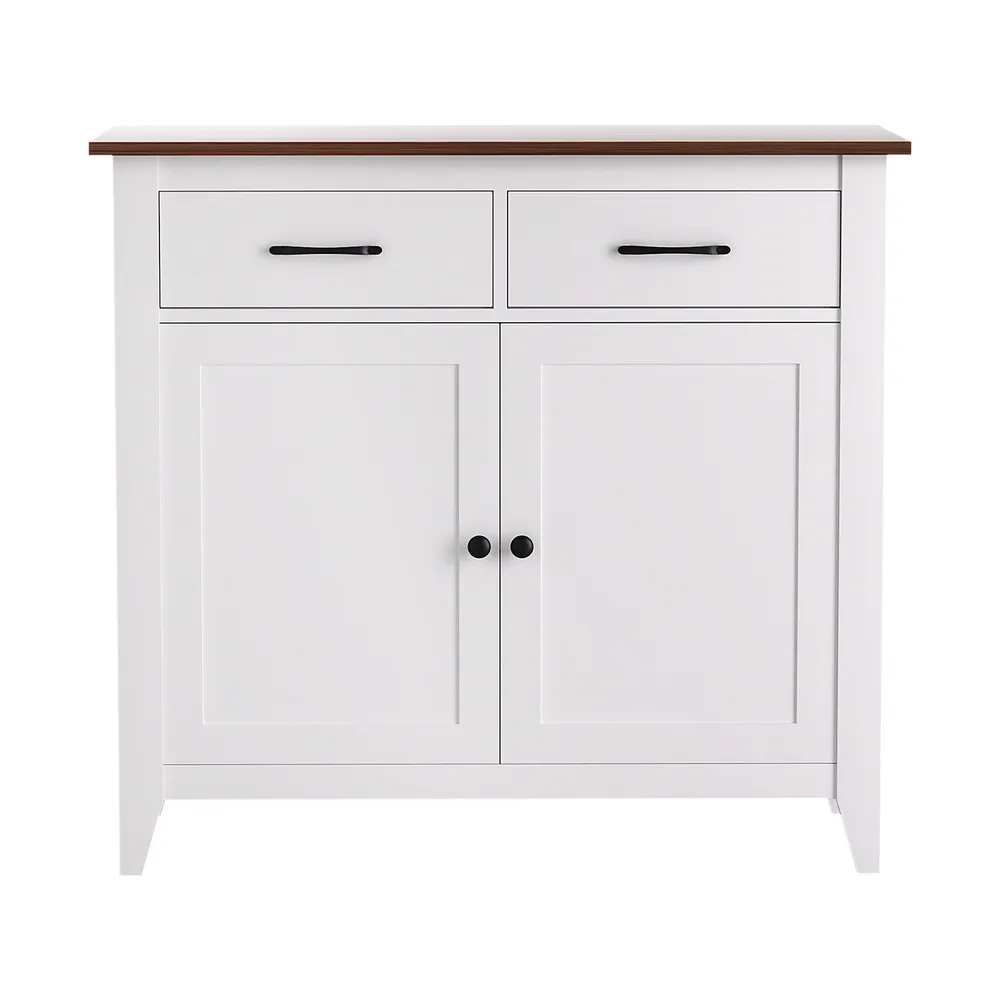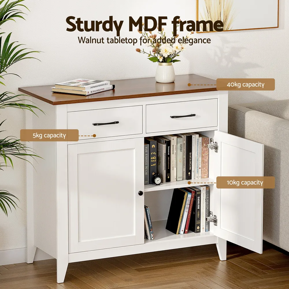 Upgrade your home with this storage cabinet, combining functionality and style. Designed with a premium walnut-look tabletop, it perfectly complements any modern or classic decor. The cabinet features 2 smooth drawers and inner shelves, offering ample storage for your essentials. Built with a robust MDF frame, it ensures durability and stability for everyday use. The sleek metal handles and knobs enhance its aesthetic, while the raised base allows effortless cleaning. An anti-tip kit is included for extra safety. Easy to maintain, clean, and assemble, this cabinet is an ideal addition to your living space. Order now and enhance your home organization today!