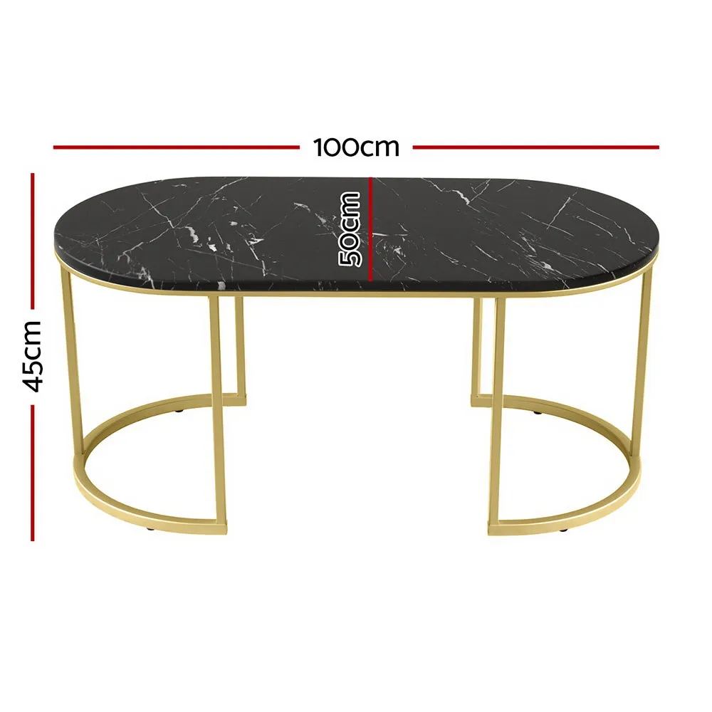 Introducing our stylish Artiss Coffee Table, featuring an MDF tabletop with PVC shrink-wrap and a luxurious marble finish. Supported by a robust metal frame with anti-slip pads, it offers easy maintenance and straightforward assembly for your convenience.