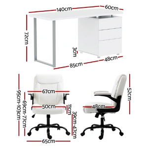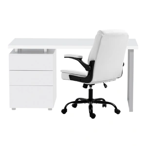 Upgrade your workspace with the Artiss Computer Desk and Chair Combo, a stylish and functional set designed for comfort and efficiency. The computer desk features a contemporary design with three spacious drawers that can be installed on either side, offering flexible storage for your essentials. Built with anti-slip U-shaped legs, it provides a stable and reliable workspace for work, study, or gaming. While smooth anti-rust metal runners ensure smooth drawer operation.