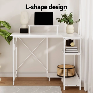 Maximize your workspace with the Artiss L-Shaped Computer Desk, designed for small spaces without sacrificing style or functionality. Its space-saving L-shape fits snugly into corners, while the wide desktop provides ample room for your monitor, laptop, and essentials. The built-in monitor stand elevates your screen for improved ergonomics, and the two-tier storage shelves keep books, supplies, and decor neatly organized. Featuring a simple, modern silhouette with smooth, safe edges, this desk blends seamlessly into any home office, dorm, or apartment. The durable particle board top and metal iron frame ensure stability, while the easy assembly means you can set it up in no time.