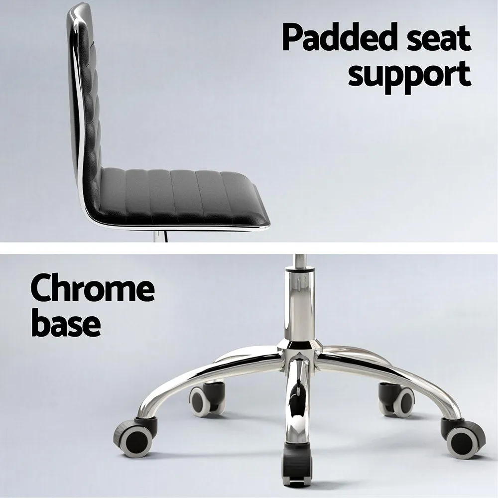 Paired with the desk is an office chair with faux leather upholstery is waterproof and offers sophistication and class. The seat is rotatable 360 degrees to face any direction with ease, while the soft padded seat keeps you comfortable for longer. It is height adjustable with a low-back design to allow you to be seated in your most comfortable position and posture. The hard metal base has five castor wheels for ease of movement.