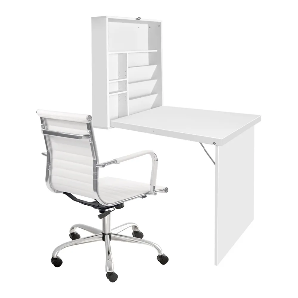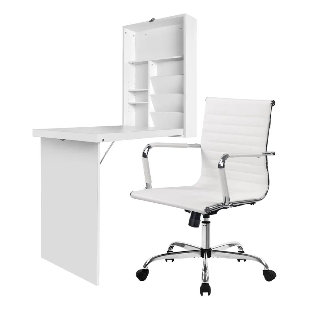Upgrade your workspace with the Artiss Computer Desk and Office Chair Combo, a stylish and practical solution for your home office or study. The foldable computer desk is the perfect choice for your home office, study or anywhere where a work desk is needed. It comes with a modern 2-in-1 design, incorporating a desk with a wall-mounted bookcase that provides ample storage space for books and stationery essentials. What's more, it can be kept away easily with a handy fold away to make room for more movement within a limited space.