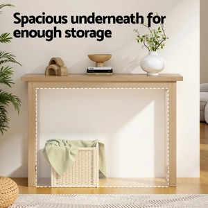 The Artiss Console Table combines minimalist design with practical features, making it a standout piece for homes, cafes, and studios. Its wood grain surface and ski-leg structure provide durability and elegance, while the spacious underspace offers functional storage. This versatile console table is easy to clean, easy to assemble, and includes an anti-toppling device, ensuring safety and stability. Perfect for entryways, hallways, or living rooms, it suits a wide range of decor styles.