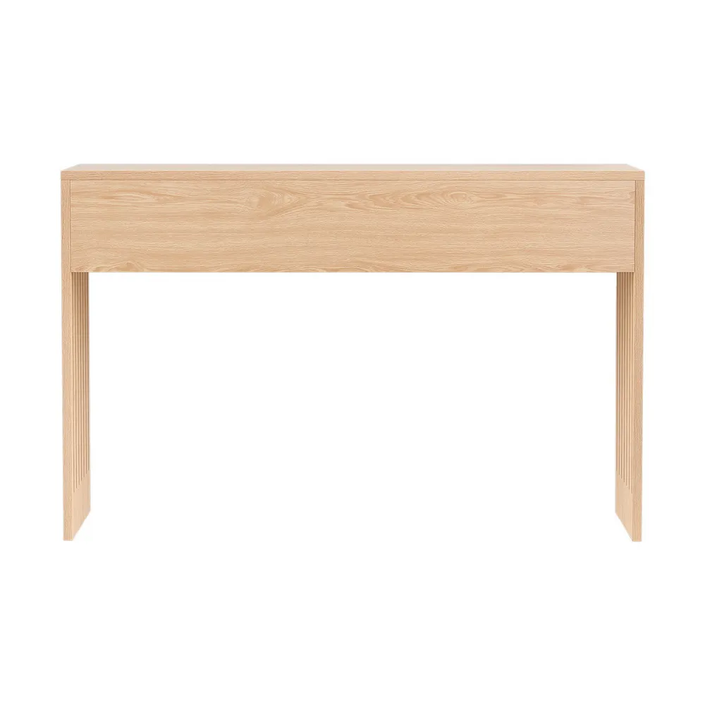 Introducing our sophisticated Artiss console table, crafted from E1-graded MDF with a luxurious melamine finish. Featuring elegant fluted side panels, a clear wood grain surface, and an anti-slip base. Effortlessly easy to clean and assemble.