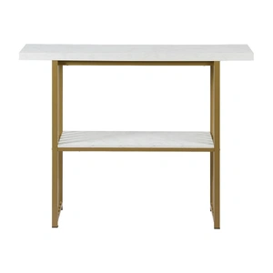 This Artiss console table combines practicality with modern aesthetics. The 40mm thickened E1 particle board tabletop features realistic faux marble finishing, paired with a robust powder-coated metal gold base. Anti-toppling device ensure stability on various floor types, while non-slip foot pads protect your flooring. Two-tier design offers ample storage space. With its versatile design, this hallway table suits entryways, living rooms or office spaces. The easy-clean surface maintains its premium look through daily use. Its adaptable styling seamlessly complements both contemporary and traditional interiors.