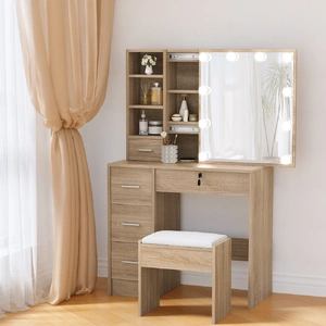 Feel like a star straight out of Hollywood with the Artiss Dressing Table. Packed with generous storage and other convenient features, your new beauty routine will be a breeze. Made from quality MDF particleboard with a melamine finish, the table is built to last. The Hollywood-style makeup mirror is surrounded by bright LED bulbs for the perfect illumination. Choose from warm, neutral and daylight white light so you can always look stage-ready. The vanity features three open shelves that you can use to display trinkets or beauty products. Five generous storage drawers with silver handles open smoothly on anti-rust runners, giving you instant access to your beauty essentials. A foam-padded PU leather stool allows you to sit comfortably while applying make-up or skincare and can be neatly tucked away when not in use. Easy to install and even easier to maintain, you'll love getting ready for the day in front of your new Artiss Dressing Table.