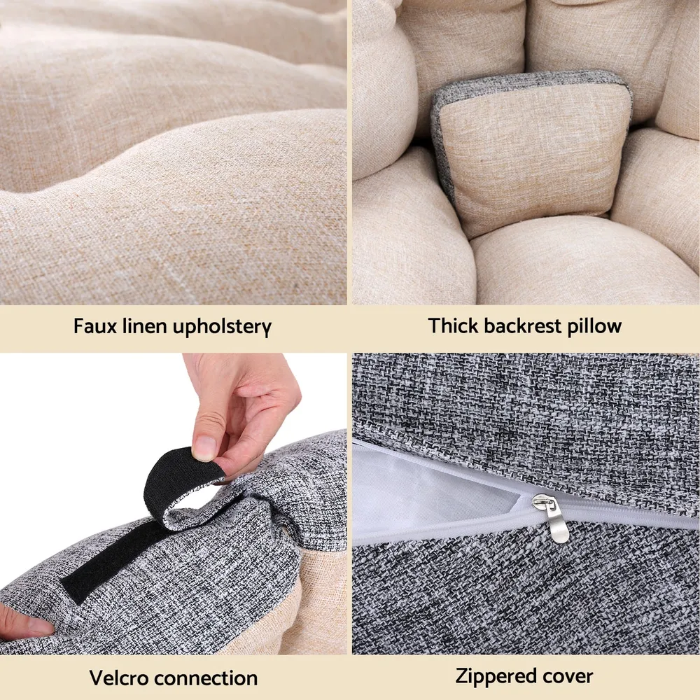 The Artiss 4-in-1 Floor Lounge Sofa Bed offers versatility for your living space. It can be used as a floor sofa, recliner, daybed, or headboard pillow to suit different needs. The button-tufted design and faux linen fabric add a stylish touch to your room. Featuring a backrest pillow and foam filling, it aims to provide comfort. The zippered cover allows for convenient maintenance.