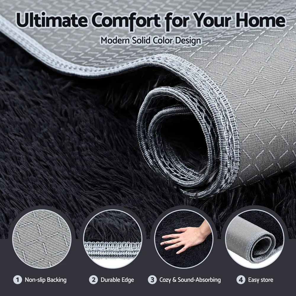 Step onto pure luxury with the Artiss Shaggy Rug. This plush area rug features a deep, soft pile with built-in foam cushioning for ultimate comfort. Its modern black design and anti-slip backing make it the perfect floor carpet for any living room or bedroom, adding warmth and style.