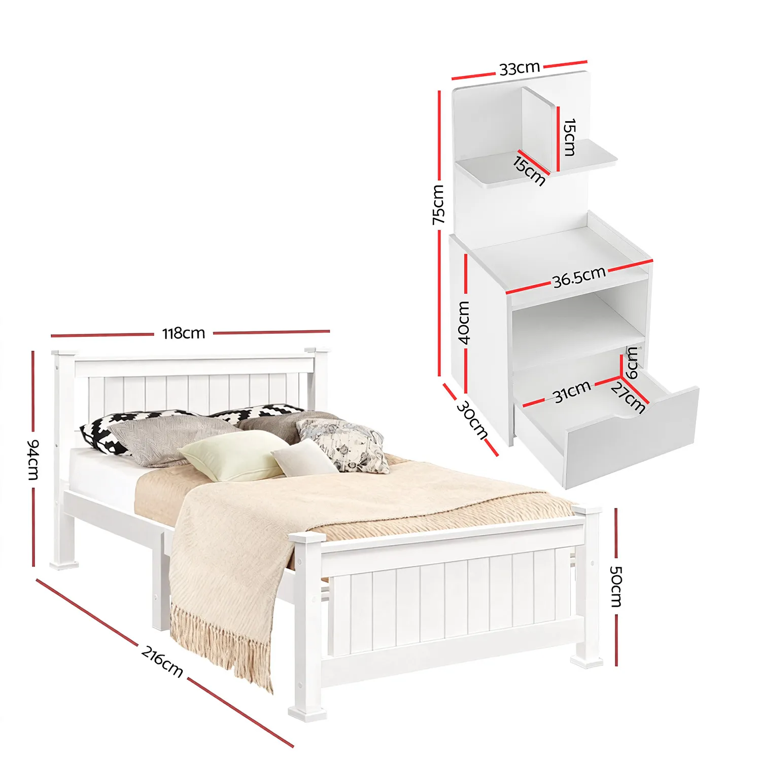 Elevate your bedroom with the perfect combination of style and functionality featuring our Rio Bed Frame and Artiss Bedside Drawer with Shelf.