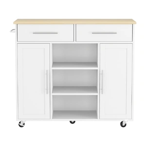 Maximize your kitchen space with the Artiss Kitchen Island Cart, designed for both storage and versatility. Crafted from durable MDF, this sturdy cart features 2 spacious drawers, 2 storage cabinets (with adjustable shelf), and 3 open shelves��perfect for organizing cookware, pantry items, or bar essentials. The convenient towel rack doubles as a push bar for easy maneuvering.