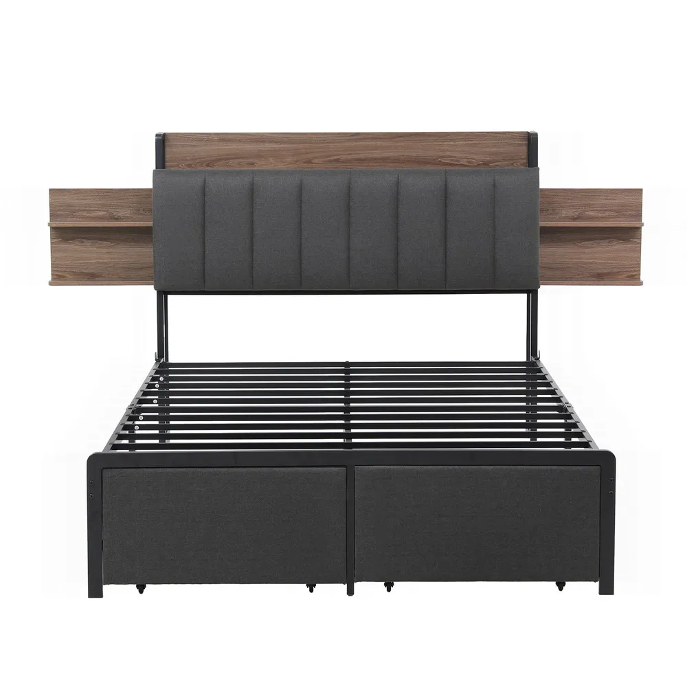 Upgraded Charging Station: Equipped with 2 AC outlets, USB & Type-C ports for easy bedside charging of all your devices.