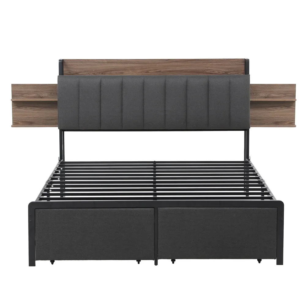 Upgraded Charging Station: Equipped with 2 AC outlets, USB & Type-C ports for easy bedside charging of all your devices.