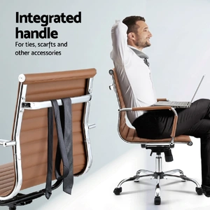 Bring a touch of contemporary living to your home or office interior with our Artiss office chair. Full of iconic styling, the office chair is absolutely sleek and elegant in every profile. More so with its faux leather upholstery that offers sophistication and class. Better still, the seat is rotatable 360° to face any direction with ease. It also comes with both height and tilt adjustment to allow you to be seated at your most comfortable position and posture. Thoughtful touches such as a chrome-finished rack at the back of the chair allows for hanging of ties, scarfs and other fashion accessories. Not least, the similar chrome adorned base has five wheel castors for easy movement.