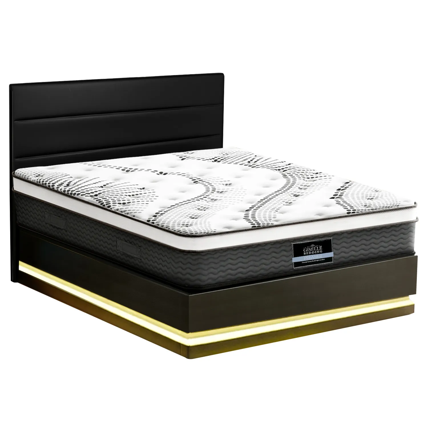 Transform your bedroom with the Artiss RGB LED Queen Bed Frame & Giselle Como Mattress Set. This premium bundle combines smart lighting technology, luxurious PVC leather upholstery, and orthopaedic support for the ultimate sleep experience.