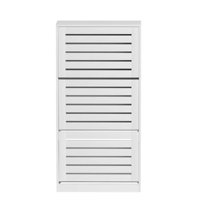 Artiss Shoe cabinet blends rack storage with cabinet convenience, featuring 3 flip-up drawers and 3 adjustable shelves behind slatted ventilation doors. This space-smart entry organiser holds 21-45 pairs (men's/ladies'/kids' sizes) across tiered racks. Built from tough particleboard with 40kg top strength and push-open ease. Comes with wall attachment for safe install - brilliant for hallway shoe storage with 30kg drawer limits.