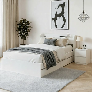 Convenient Storage Solutions: Enjoy the practicality of the Aura Bed Frame's built-in storage and the Pepe Bedside Table's spacious drawers, keeping your room organized and clutter-free.