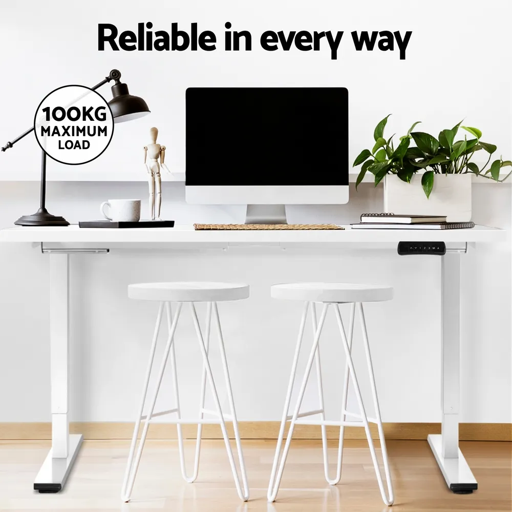 Poor posture and sedentary lifestyles contribute to several health issues. Now keep your health in good shape with the Artiss Motorised Adjustable Desk Frame! Designed to go with our Artiss Desktop, it wont disappoint you either with its quality or aesthetics. With our innovative height-adjustable desk frame, you can stand while working and stretch and engage your muscles to prevent them from weakening. Our desk frame features an easy-to-use digital control panel that enables you to easily adjust the desk to a suitable height and ensure your comfort while working. Save up to 3 pre-set heights so you can instantly get comfortable whenever you need. The smooth motors allow for ultra-quiet operation with low energy consumption. Our high-quality powder-coated desk frame makes cleaning and maintenance easy and ensures ultimate sturdiness. It also comes with adjustable rubber foot pads that offer extra stability and keep your floors safe. As for the desktop, it comes with pre-drilled holes for easy installation. It is made from eco-friendly particleboard and comes with a natural wood grain or contemporary matte finish to create a smooth surface and a beautiful aesthetic. The desktop is scratch resistant and perfect for all your working needs. Get yourself Artiss Motorised Adjustable Desk Frame and Desktop to prevent fatigue and improve productivity.