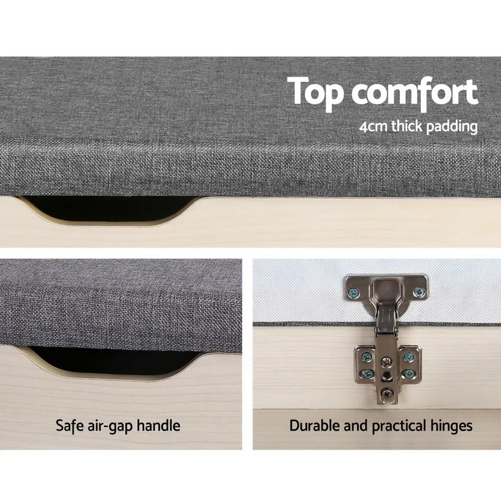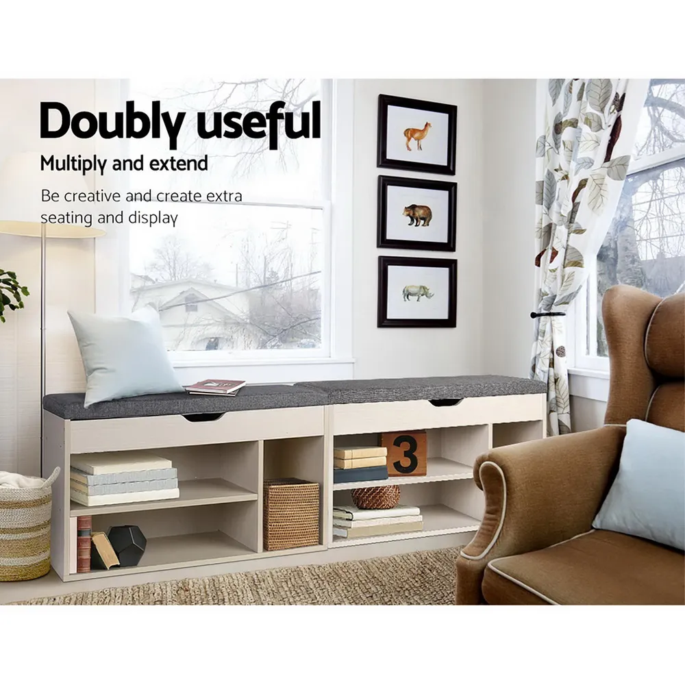 Say goodbye to messy entrances and hallways littered with shoes and footwear all over the place. You can now transform all that clutter into a neat and tidy storage with our Bench Shoe Rack. Made of eco-friendly particle board and finished with a smooth white veneer, our shoe rack has ample space to store up to six pairs of footwear. Shoes, sneakers, boots, heels and sandals are all welcomed to own their spot in the two open shelves and side compartment. Plus, a storage drawer above provides more space for other footwear essentials. Not least, an air-gap handle makes it easy to open the drawer too. To top it off, the entire shoe rack also doubles as a comfortable fabric bench for you.