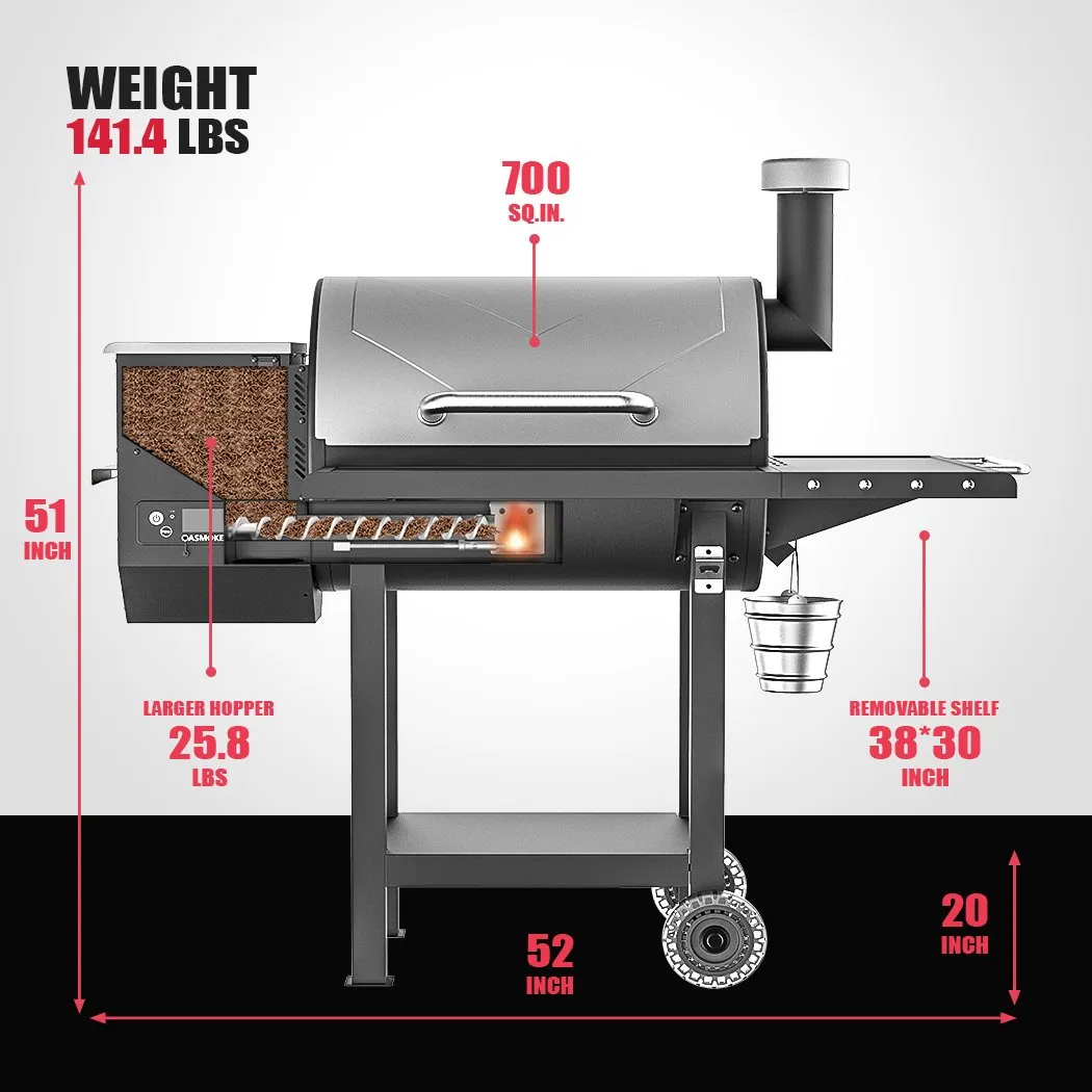 484 Square Inch Main Rack + 216 Square Inch Insulation Rack, Totaling To 700 Square Inches. Ideal For A Larger 3-12 Member Get-Together. Featuring A Whopping 25.8LBS Hopper Capacity Makes It Ideal For Continuous Smoking.