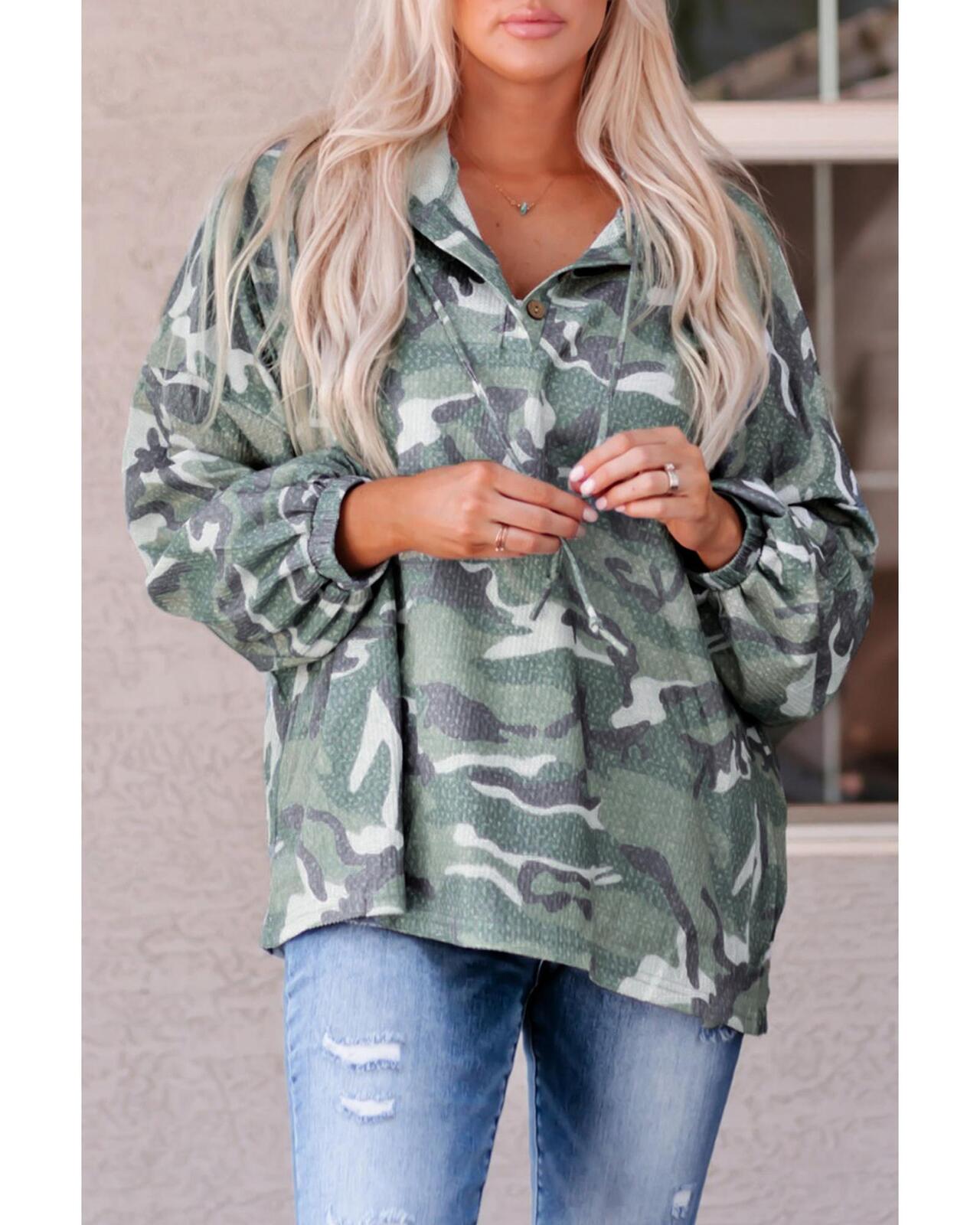 - Long Sleeve Camo Print Oversize Hoodie