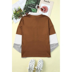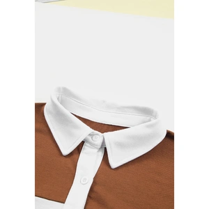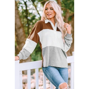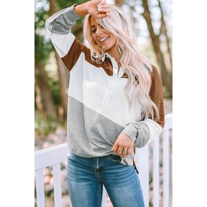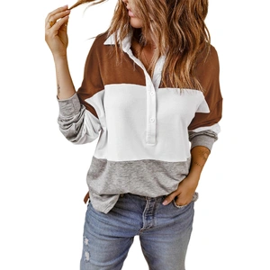 - Turn-down Collar Colorblock Pullover Sweatshirt