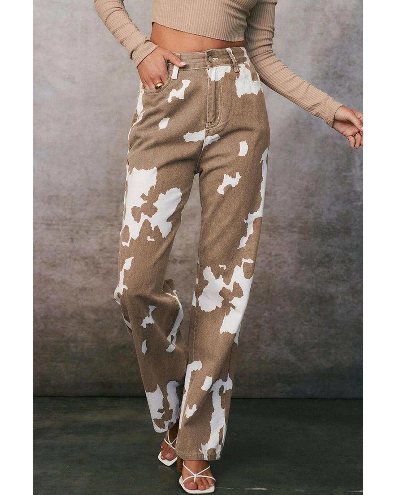 - Unique khaki color with cow spot print