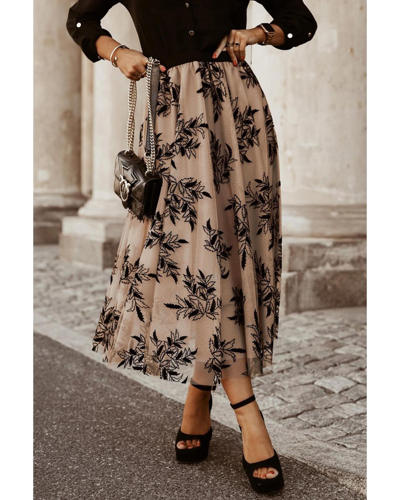 - Luxurious Floral Leaves Embroidered High Waist Maxi Skirt