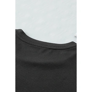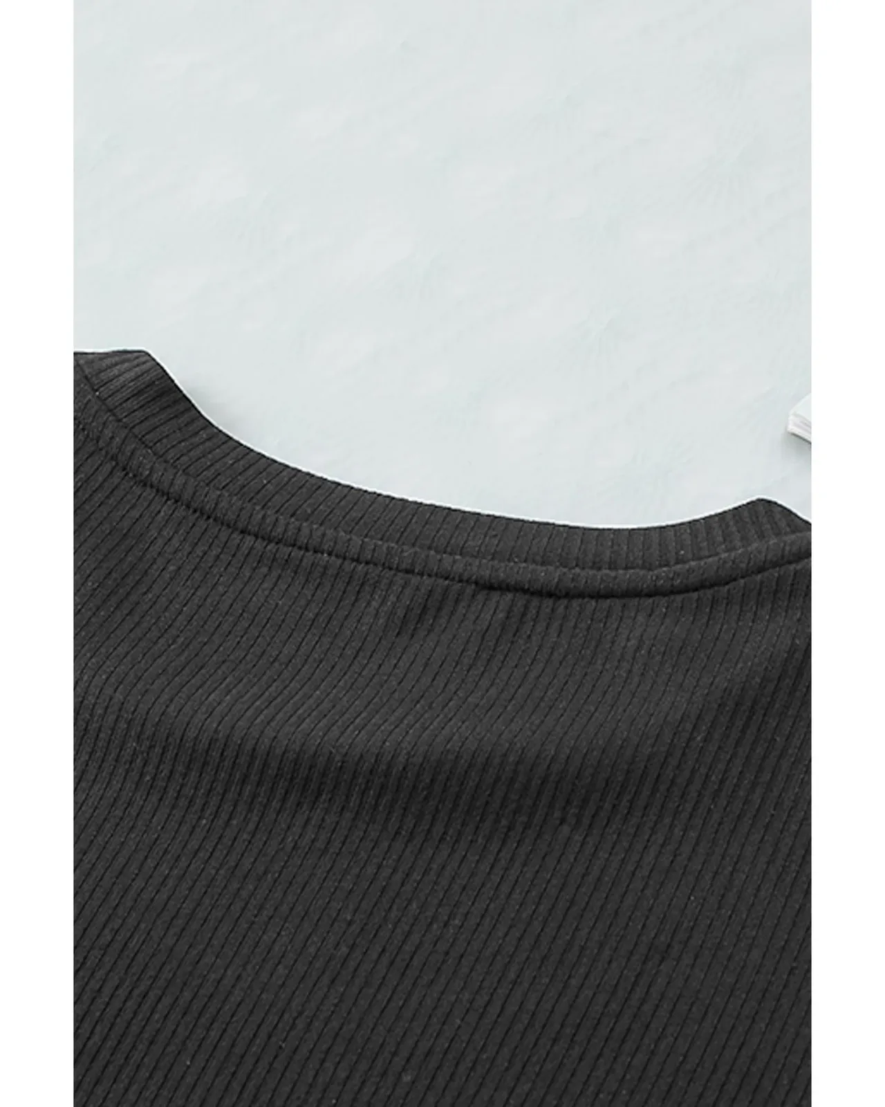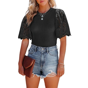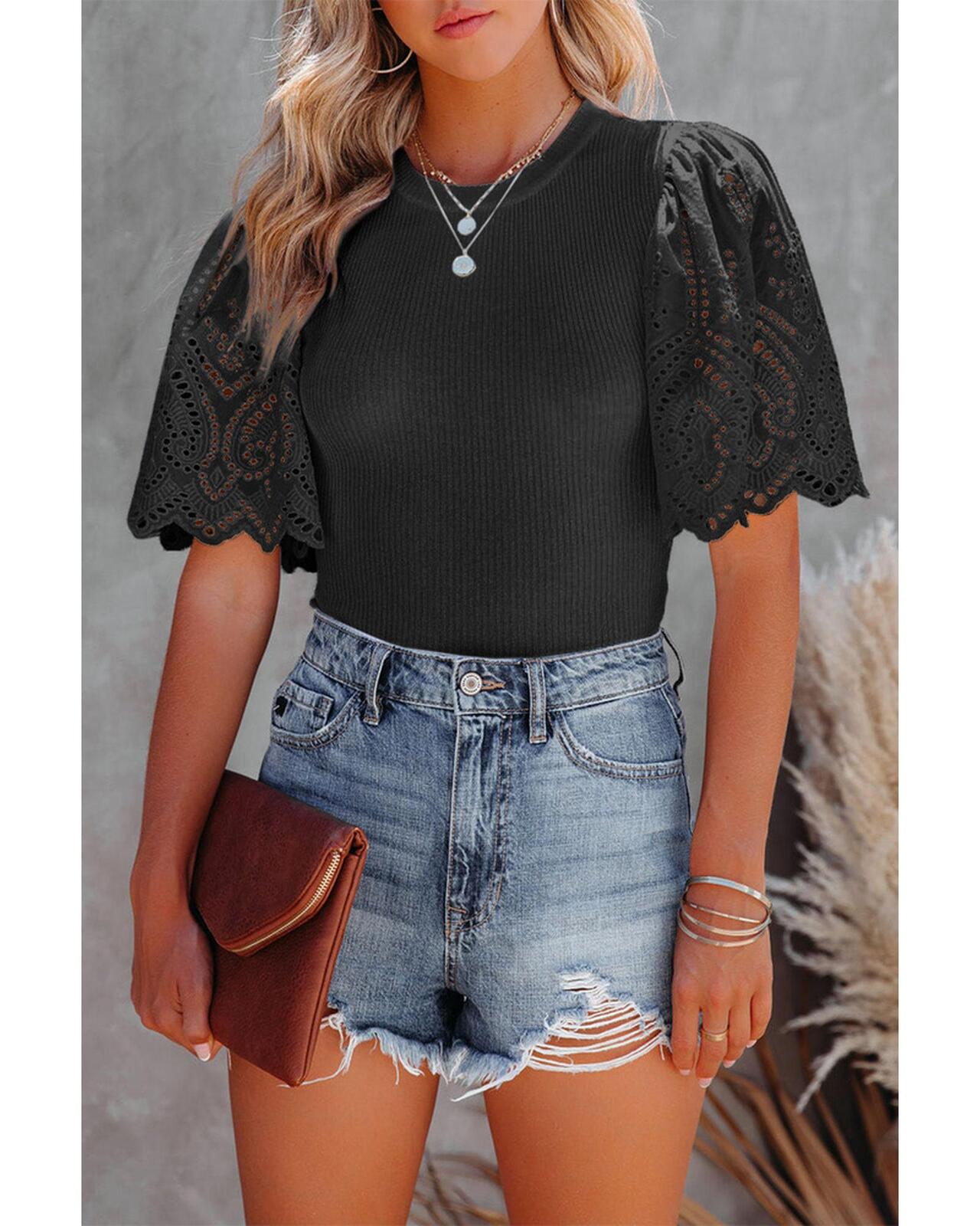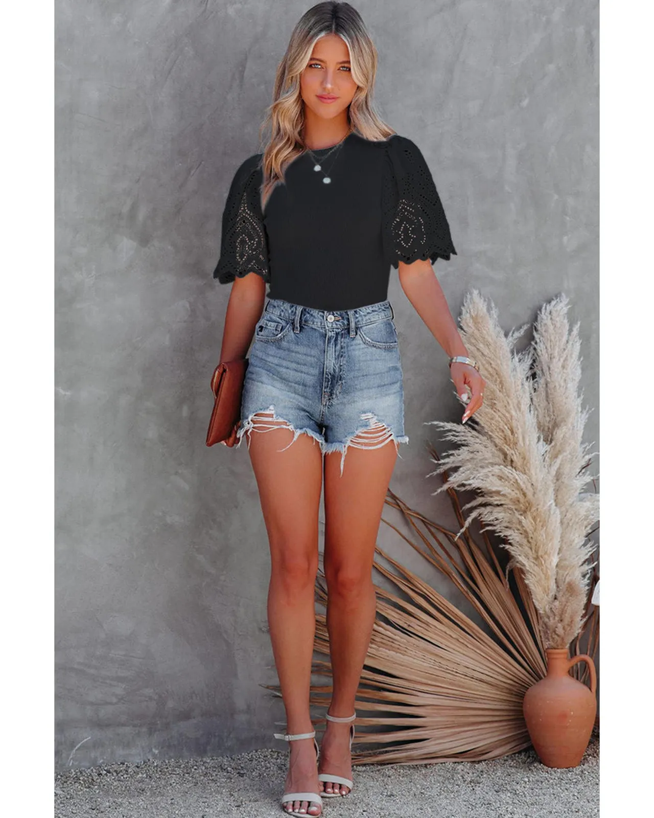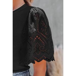 - Luxurious Scalloped Eyelet Sleeve Ribbed Knit Top