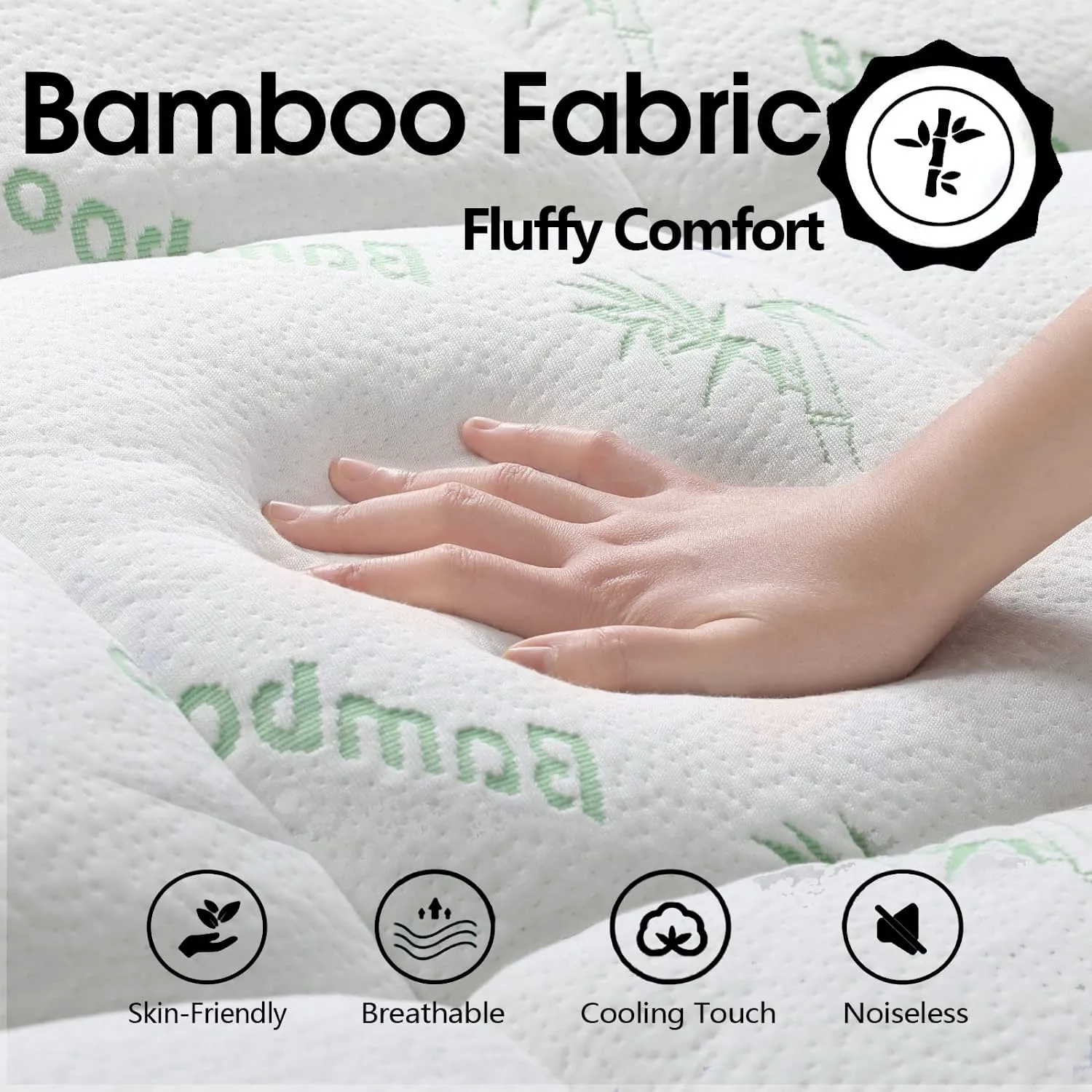 Bamboo Cover makes the pillow top mattress topper cooling extra thick, Our bamboo mattress Topper help ease back pain by adding cushion between the sleeper and the mattress.
