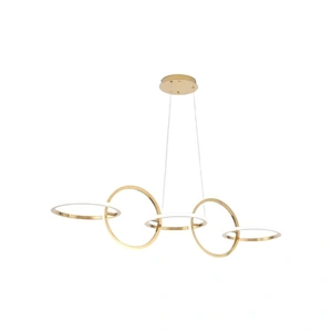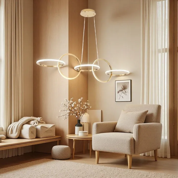 Illuminate your space with the Nordic long dimmable Golden Circles Pendant Light. Ideal for dining rooms, bars, and kitchens, this creative chandelier features a sleek ice design with top and bottom illumination. It offers flicker-free, finely detailed, and natural lighting with three adjustable color temperatures: cool white, warm white, and warm yellow. The adjustable suspension wire makes it adaptable to different ceiling heights. The high-transparency acrylic lampshade ensures bright, energy-efficient LED light that accurately renders colors and protects your eyes. Constructed from durable iron, aluminum, and acrylic with a high-quality baking paint finish, this pendant light is both stylish and built to last. Available in classic black and white colors.