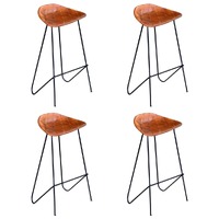 This soft and comfortable real leather chair has an iconic look, in keeping with the industrial style that's all the rage right now. It will look great not only in restaurants or bars, but also in your living room or dining room at home. The upholstered genuine leather is soft to the touch and makes the chair extremely durable. The soft goat leather seat with nice diamond-shaped stitches makes for a comfortable seating experience, while the solid iron legs with footrest make the stool stable and durable. Delivery includes 2 leather bar chairs.