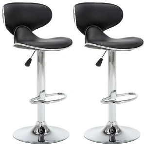 These bar stools, featuring a simple yet stylish design, offer great comfort when relaxing or having a meal. These bar chairs are upholstered in easy-to-clean faux leather for optimal seating comfort. Supported by chromed steel frames, they are stable and sturdy. The soft foam padded seats, backrests as well as footrests make the chairs the perfect spot to relax. Thanks to the gas lift mechanism, the pub chairs are also adjustable in height. They can also swivel 360 degrees for incredible flexibility.