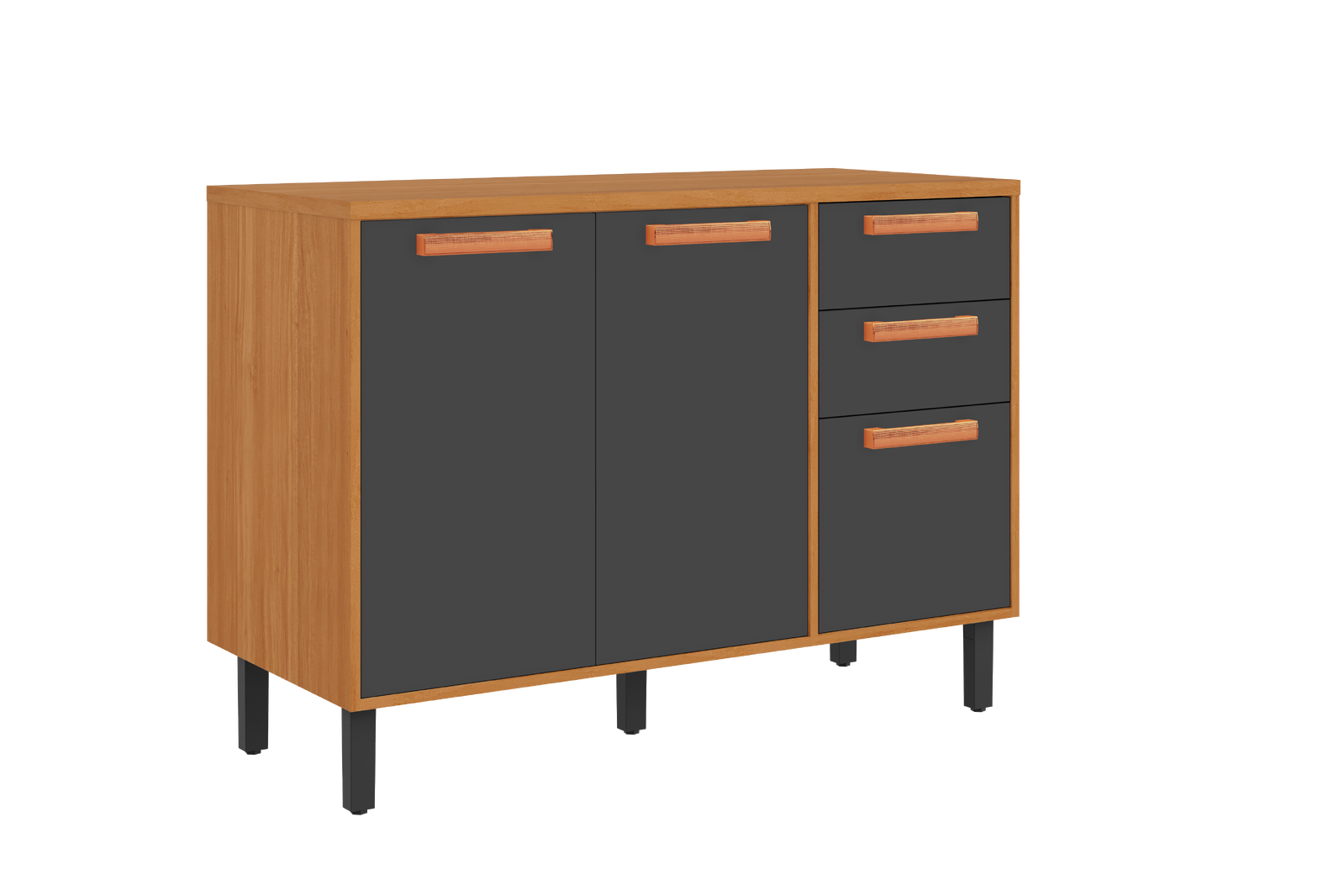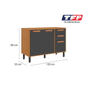 Napoles Flat Pack DIY Kitchen Counter Cabinet – 3 Doors + 2 Drawers in White/Graphite and Cinnamon Finish