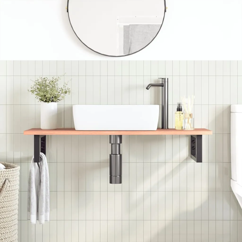 The wall mounted basin shelf securely attaches to the wall, providing an elegant and space-saving solution for your bathroom. Sturdy and long-lasting: This basin shelf is combined with a steel structure and a solid oak wood top, making it sturdy, stable, and long-lasting.Space-saving: The floating basin shelf has ample space to store creams and small items. Thanks to the rectangular shape, you can hang towels or other things on the support to save space.Easy to use: The countertop comes undrilled to allow the basin to be mounted on the left, right, or in the centre, depending on your room's requirements. Thanks to the pre-drilled holes in the holder, it can be easily assembled with the tabletop and mounted on the wall.Wide applications: Thanks to its modern design, it provides additional space for various types of bathrooms. Good to know:Screws are not included, you can purchase the screws separately based on the information provided below.Wall attachment: 2 pcs M8 expansion screws per bracketWooden top: 2 pcs M5x18 screws (T=2) or 2 pcs M5x20 screws (T=2.5/4cm) per bracketAs a natural product, wood may show knots and imperfections that we fill with black fillings to ensure a smooth appearance.