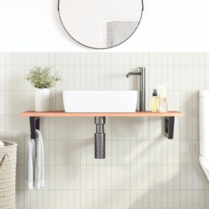 The wall mounted basin shelf securely attaches to the wall, providing an elegant and space-saving solution for your bathroom. Sturdy and long-lasting: This basin shelf is combined with a steel structure and a solid oak wood top, making it sturdy, stable, and long-lasting.Space-saving: The floating basin shelf has ample space to store creams and small items. Thanks to the trapezium shape, you can hang towels or other things on the support to save space.Easy to use: The countertop comes undrilled to allow the basin to be mounted on the left, right, or in the centre, depending on your room's requirements. Thanks to the pre-drilled holes in the holder, it can be easily assembled with the tabletop and mounted on the wall.Wide applications: Thanks to its modern design, it provides additional space for various types of bathrooms. Good to know:Screws are not included, you can purchase the screws separately based on the information provided below.Wall attachment: 2 pcs M8 expansion screws per bracketWooden top: 2 pcs M5x18 screws (T=2) or 2 pcs M5x20 screws (T=2.5/4cm) per bracketAs a natural product, wood may show knots and imperfections that we fill with black fillings to ensure a smooth appearance.