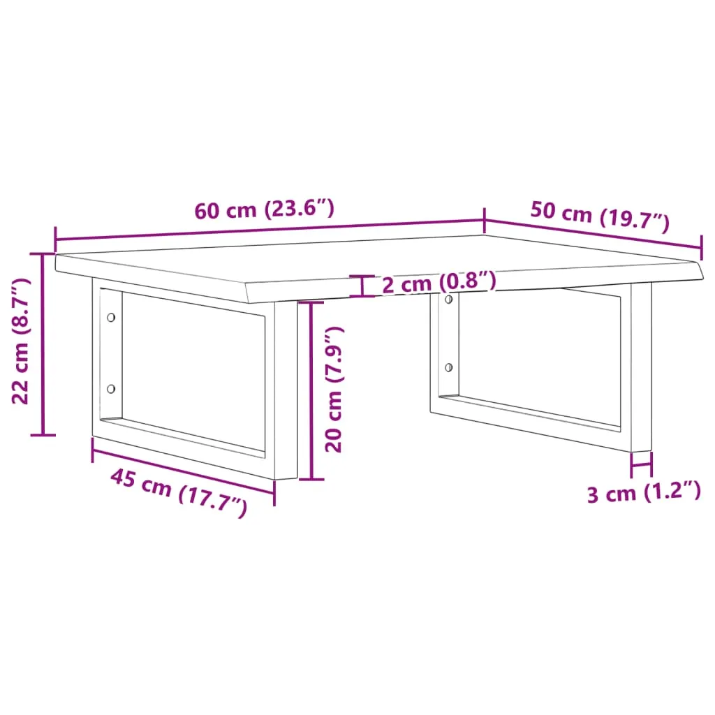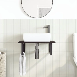 The wall mounted basin shelf securely attaches to the wall, providing an elegant and space-saving solution for your bathroom. Sturdy and long-lasting: This basin shelf is combined with a steel structure and a solid oak wood top, making it sturdy, stable, and long-lasting.Space-saving: The floating basin shelf has ample space to store creams and small items. Thanks to the rectangular shape, you can hang towels or other things on the support to save space.Easy to use: The countertop comes undrilled to allow the basin to be mounted on the left, right, or in the centre, depending on your room's requirements. Thanks to the pre-drilled holes in the holder, it can be easily assembled with the tabletop and mounted on the wall.Wide applications: Thanks to its modern design, it provides additional space for various types of bathrooms. Good to know:Screws are not included, you can purchase the screws separately based on the information provided below.Wall attachment: 2 pcs M8 expansion screws per bracketWooden top: 2 pcs M5x18 screws (T=2) or 2 pcs M5x20 screws (T=2.5/4cm) per bracketAs a natural product, wood may show knots and imperfections that we fill with black fillings to ensure a smooth appearance.