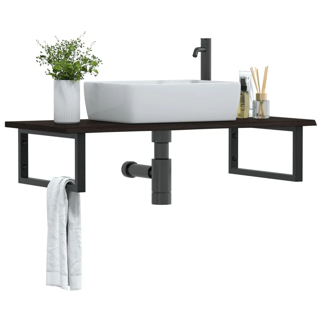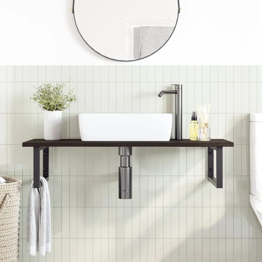The wall mounted basin shelf securely attaches to the wall, providing an elegant and space-saving solution for your bathroom. Sturdy and long-lasting: This basin shelf is combined with a steel structure and a solid oak wood top, making it sturdy, stable, and long-lasting.Space-saving: The floating basin shelf has ample space to store creams and small items. Thanks to the rectangular shape, you can hang towels or other things on the support to save space.Easy to use: The countertop comes undrilled to allow the basin to be mounted on the left, right, or in the centre, depending on your room's requirements. Thanks to the pre-drilled holes in the holder, it can be easily assembled with the tabletop and mounted on the wall.Wide applications: Thanks to its modern design, it provides additional space for various types of bathrooms. Good to know:Screws are not included, you can purchase the screws separately based on the information provided below.Wall attachment: 2 pcs M8 expansion screws per bracketWooden top: 2 pcs M5x18 screws (T=2) or 2 pcs M5x20 screws (T=2.5/4cm) per bracketAs a natural product, wood may show knots and imperfections that we fill with black fillings to ensure a smooth appearance.
