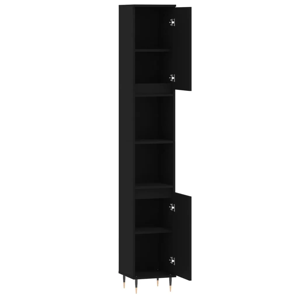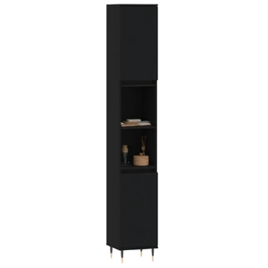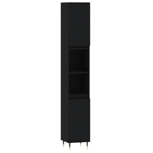 This bathroom cabinet is meant to be a great addition to your bathroom, giving it a tidy and striking appearance! Durable material: The engineered wood is of exceptional quality with smooth surface and also features strength, stability, and resistance to moisture.Ample storage space: The bathroom furniture has 4 compartments with doors and 2 open shelves, offering various storage options and extra space to store items in your bathroom.Flexible door installation: You can install the doors either on the left or right side based on your own needs.Iron feet: The iron feet add an industrial style to your interior while ensuring the stability of the bathroom storage cabinet. Warning:To prevent it being overturned, this product must be used with the provided wall attachment device. Good to know:Screws and plugs for inside the wall are not included. We advise to find and use screws and plugs suitable specifically for your walls. If you're not sure, you can consult with a professional. Please read and follow each step of the instructions.