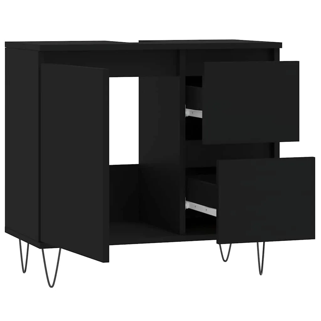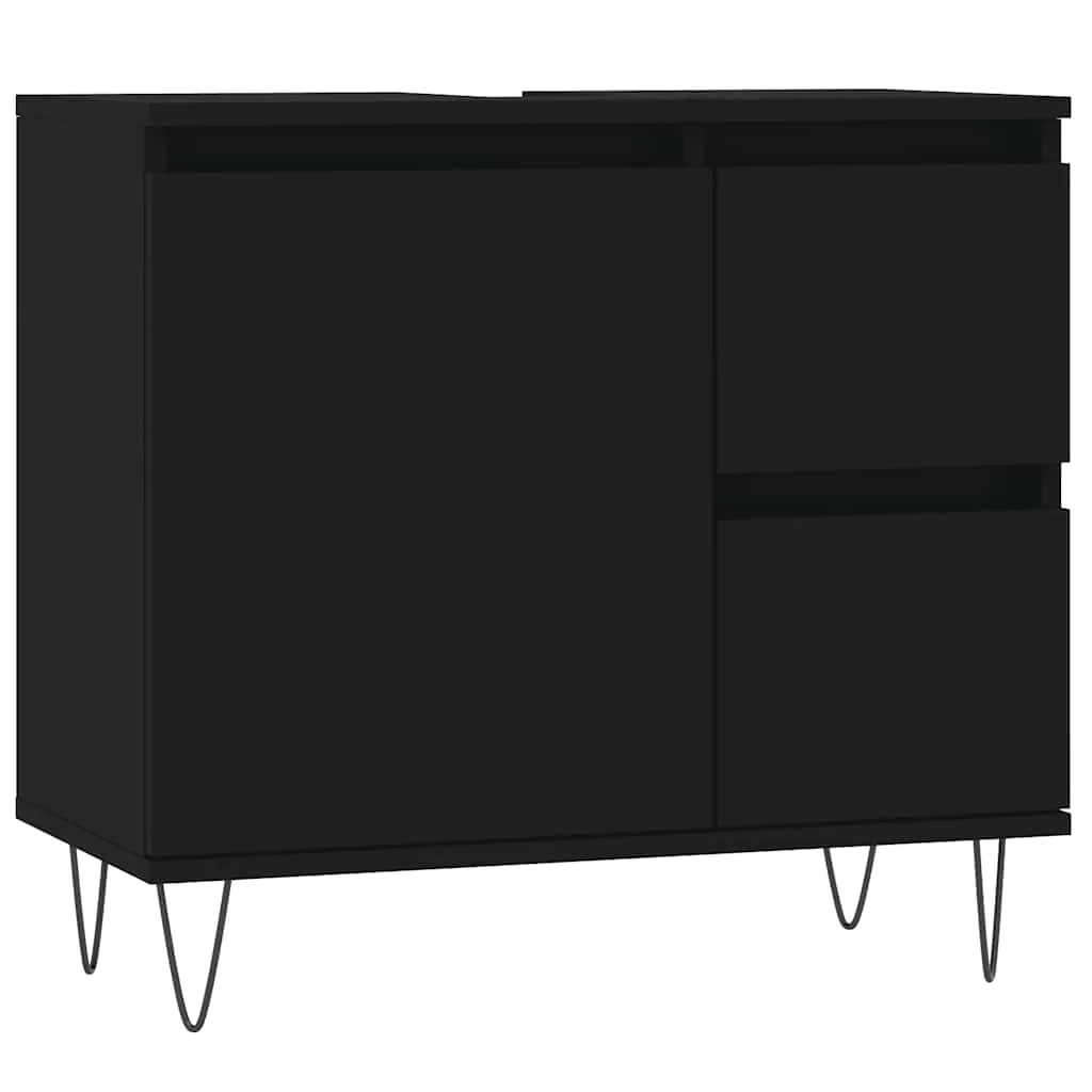 This bathroom cabinet is meant to be a great addition to your bathroom, giving it a tidy and striking appearance! Durable material: The engineered wood is of exceptional quality with smooth surface and also features strength, stability, and resistance to moisture.Ample storage space: The bathroom furniture has 1 compartment with door and 2 drawers, offering various storage options and extra space to store items in your bathroom.Flexible door installation: You can install the door and drawers either on the left or right side based on your own needs.Iron feet: The iron feet add an industrial style to your interior while ensuring the stability of the bathroom storage cabinet. Warning:To prevent it being overturned, this product must be used with the provided wall attachment device.