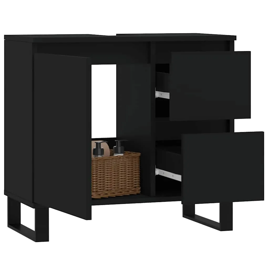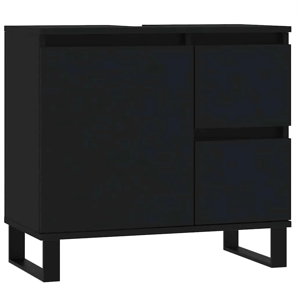 This bathroom cabinet is meant to be a great addition to your bathroom, giving it a tidy and striking appearance! Durable material: The engineered wood is of exceptional quality with smooth surface and also features strength, stability, and resistance to moisture.Ample storage space: The bathroom furniture has 1 compartment with door and 2 drawers, offering various storage options and extra space to store items in your bathroom.Flexible door installation: You can install the door and drawers either on the left or right side based on your own needs.Iron feet: The iron feet add an industrial style to your interior while ensuring the stability of the bathroom storage cabinet. Warning:To prevent it being overturned, this product must be used with the provided wall attachment device.