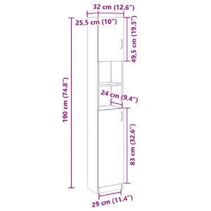 This bathroom cabinet is an excellent addition to your bathroom, giving it a tidy and striking appearance! Long-lasting material: The engineered wood is of exceptional quality with a smooth surface and also features strength, stability, and resistance to moisture.Ample storage space: The storage cabinet offers ample space to easily accommodate your essential toiletries and bath items such as soaps, shampoo, toothpaste, etc.Easy to maintain: Thanks to its smooth surface, the cabinet is easy to clean with a damp cloth and requires less maintenance. Warning:To prevent it from tipping over, this product must be used with the provided wall attachment device. Good to know:Screws and plugs for inside the wall are not included. We advise to find and use screws and plugs suitable specifically for your walls. If you're not sure, you can consult with a professional. Please read and follow each step of the instructions.