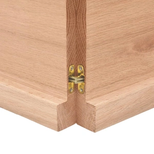 Are you planning to renovate your countertops at home? This wooden bathroom countertop is a perfect choice! Durable construction: This bathroom worktop is made of solid oak wood, which is a beautiful natural material. Oak wood has a medium brown colour and a dense grain, contributing to its unique look. Due to the hinge design, it can be folded and stored in narrow spaces.Versatile applications: Besides a bathroom vanity top, this wooden countertop can be combined with different bases according to your needs. It can be used as a shelf, cabinet top, desk top, table top etc.Treated surface: The bathroom top has been varnished so it is ready for use as an additional finish is not required.Handmade with live edge: This bathroom vanity countertop is handmade with a live edge. Due to that the knots, cracks, slightly curved shapes, and colour tones are part of the oak wood, every piece of oak countertop has its own unique character to display. The delivery is random. Good to know:As a natural product, wood may show knots and imperfections that we fill with black fillings to ensure a smooth appearance.