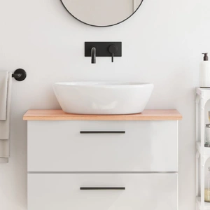 Are you planning to renovate your countertops at home? This wooden bathroom countertop is a perfect choice! Durable construction: This bathroom worktop is made of solid oak wood, which is a beautiful natural material. Oak wood has a medium brown colour and a dense grain, contributing to its unique look.Versatile applications: Besides a bathroom vanity top, this wooden countertop can be combined with different bases according to your needs. It can be used as a shelf, cabinet top, desk top, table top etc.Treated surface: The bathroom top has been varnished so it is ready for use as an additional finish is not required.Handmade with live edge: This bathroom vanity countertop is handmade with a live edge. Due to that the knots, cracks, slightly curved shapes, and colour tones are part of the oak wood, every piece of oak countertop has its own unique character to display. The delivery is random. Good to know:As a natural product, wood may show knots and imperfections that we fill with black fillings to ensure a smooth appearance.