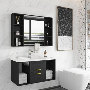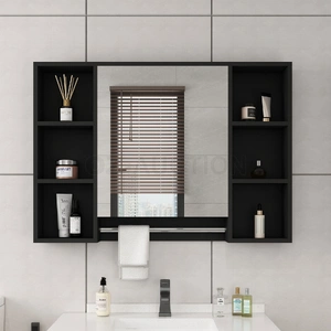 - Stylish and Functional Design: Features a sleek, mirrored surface that adds a touch of sophistication to your bathroom or living room, while the classic black finish complements any decor style.